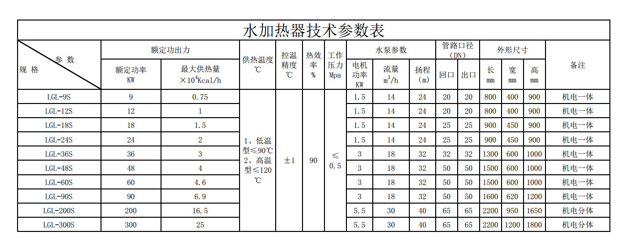 LGL系列--水加熱器技術(shù)參數(shù)表